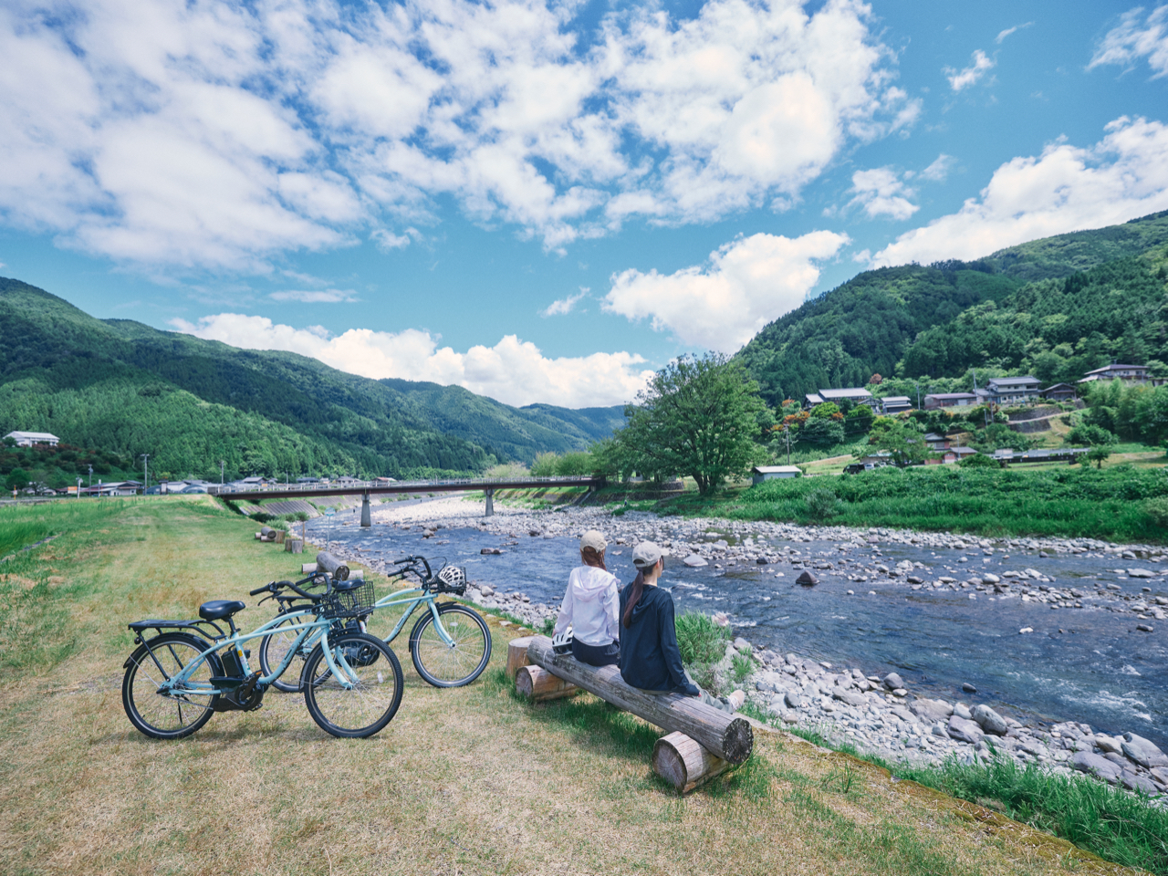 南飛騨・下呂『日本で最も美しい村 馬瀬』の自然を大満喫!Eバイクde里山ポタリング2.5時間プライベートツアー 秘境の河原で至福のコーヒータイム☆女性・友達同士・カップル・ファミリーにおすすめ♪
