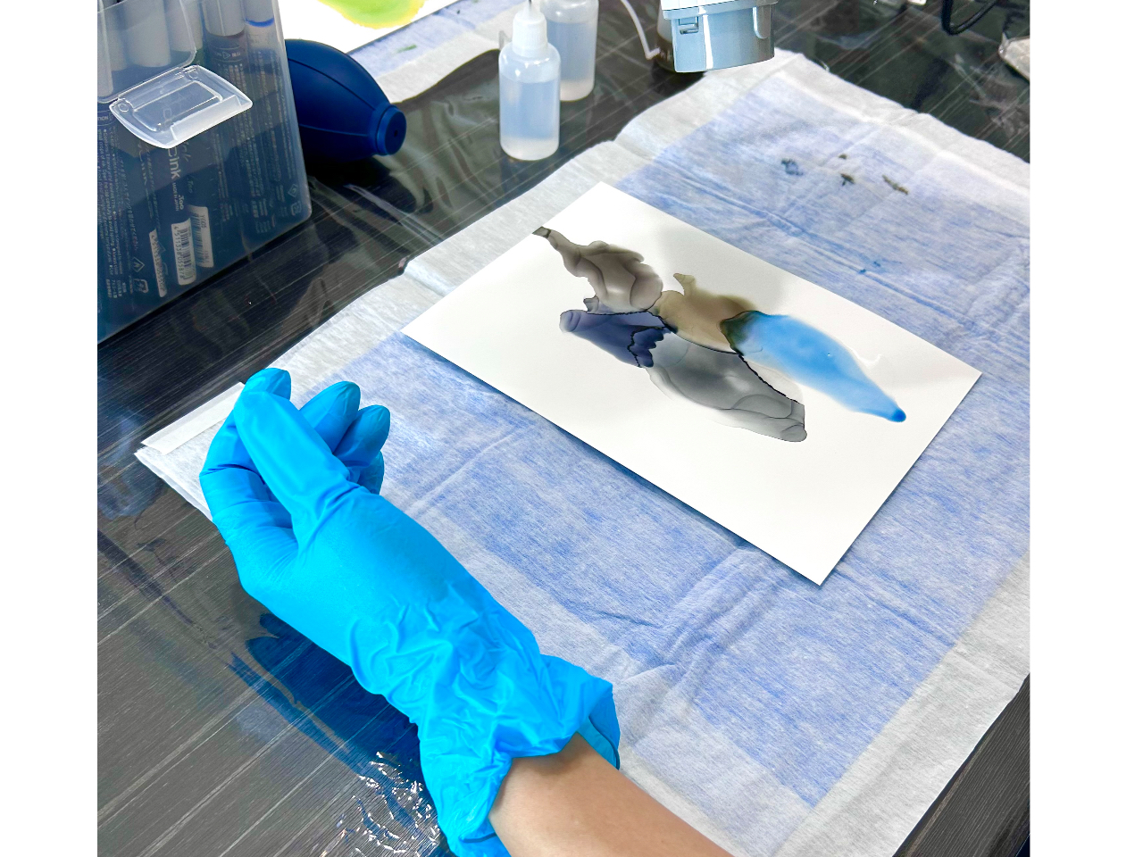 ■アルコールインクと風を使い、インクの動きと重なりを楽しめます♪