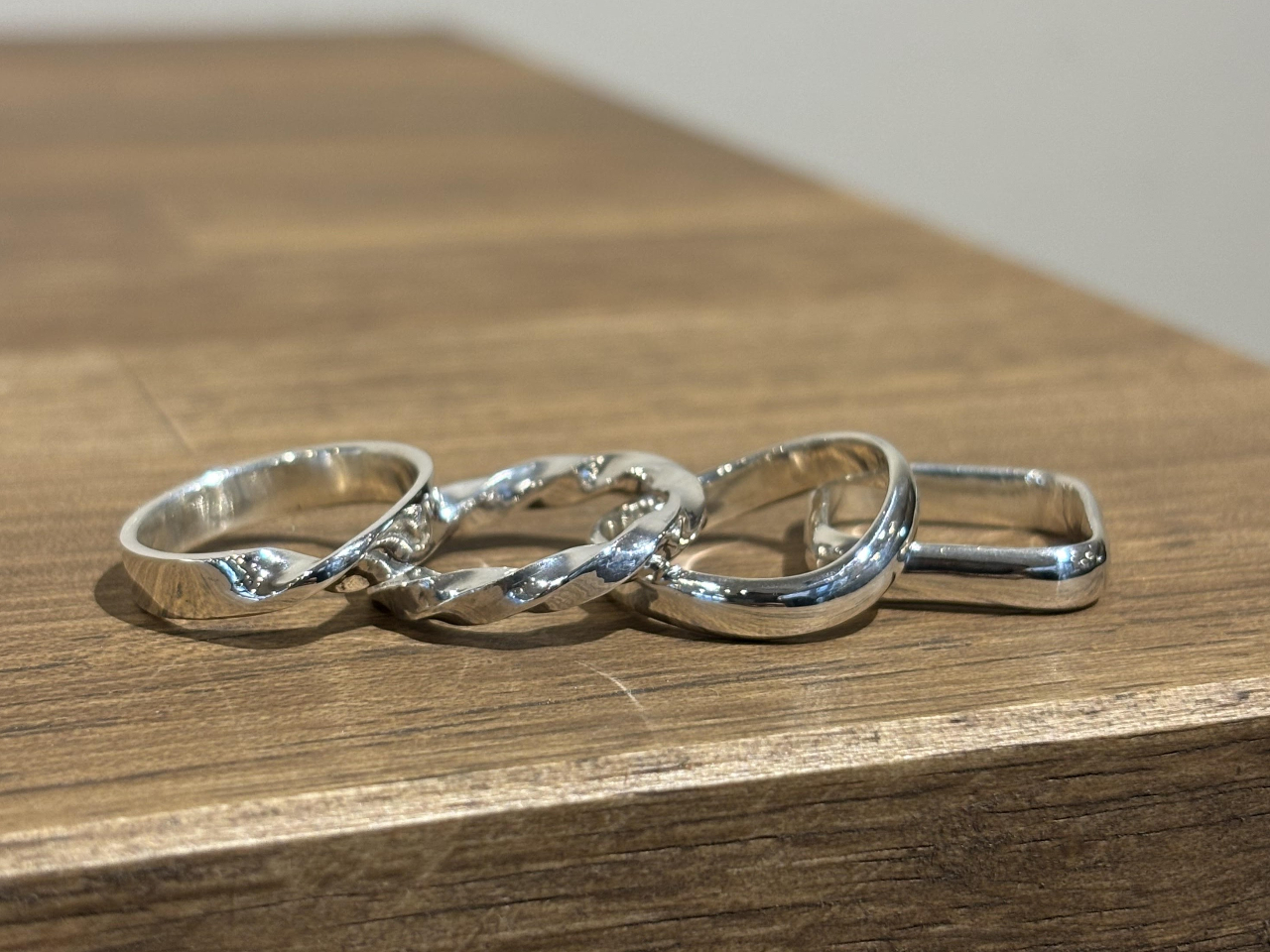 リングの形・幅、表面仕上げ、指の号数を決めて制作を始めます。