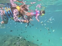 ほかの口コミにもあるように、インストラクターのお姉さんが優しく子供に対して積極的に仲良くして下さるので見知りの息子が珍しく初めから最初から最後までハイテンション。海に入ると沢山の熱帯魚、高架下には思ってる500倍ぐらいの魚の群がおり神秘的な世界が広がっていました。結果子供の為の予約だったのですが子供以上に大人も楽しみました!写真や動画も撮って頂きいたれりつくせり!!自分も防水シートに入れてケータイを持って行きましたがシュノーケルを着けていると顔認証されず+陸より認識悪く写真全くとれず(゚^∀^゚)゚。写真お任せして置いてきたらよかった!