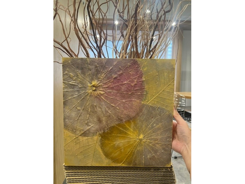 木製パネルに天然の蓮の葉や