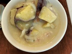 クリーム煮、うどん、まぜご飯とプリンは、前回お目にかからなかったので、こちらもおかわりしました。時間制限なしのプランでしたので、じっくりセルフアレンジして食べるのも楽しめました。串カツをソースでディップしカレーをかけてたべると、とても食が進みました。うどんに御椀に肉吸いを入れた後、カレーをかけるとカレー肉吸いうどんになりました。ブレッドはお客さんが多い時間帯になると品切れになり、早い時間帯に食べて正解だと思いました。