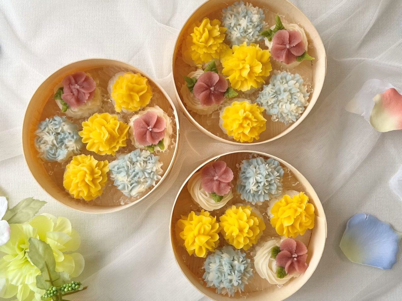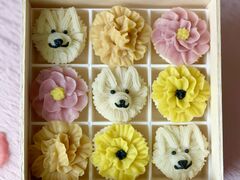 季節によりお花を乗せる土台(ケーキ、お団子、おはぎ)が変更になります。