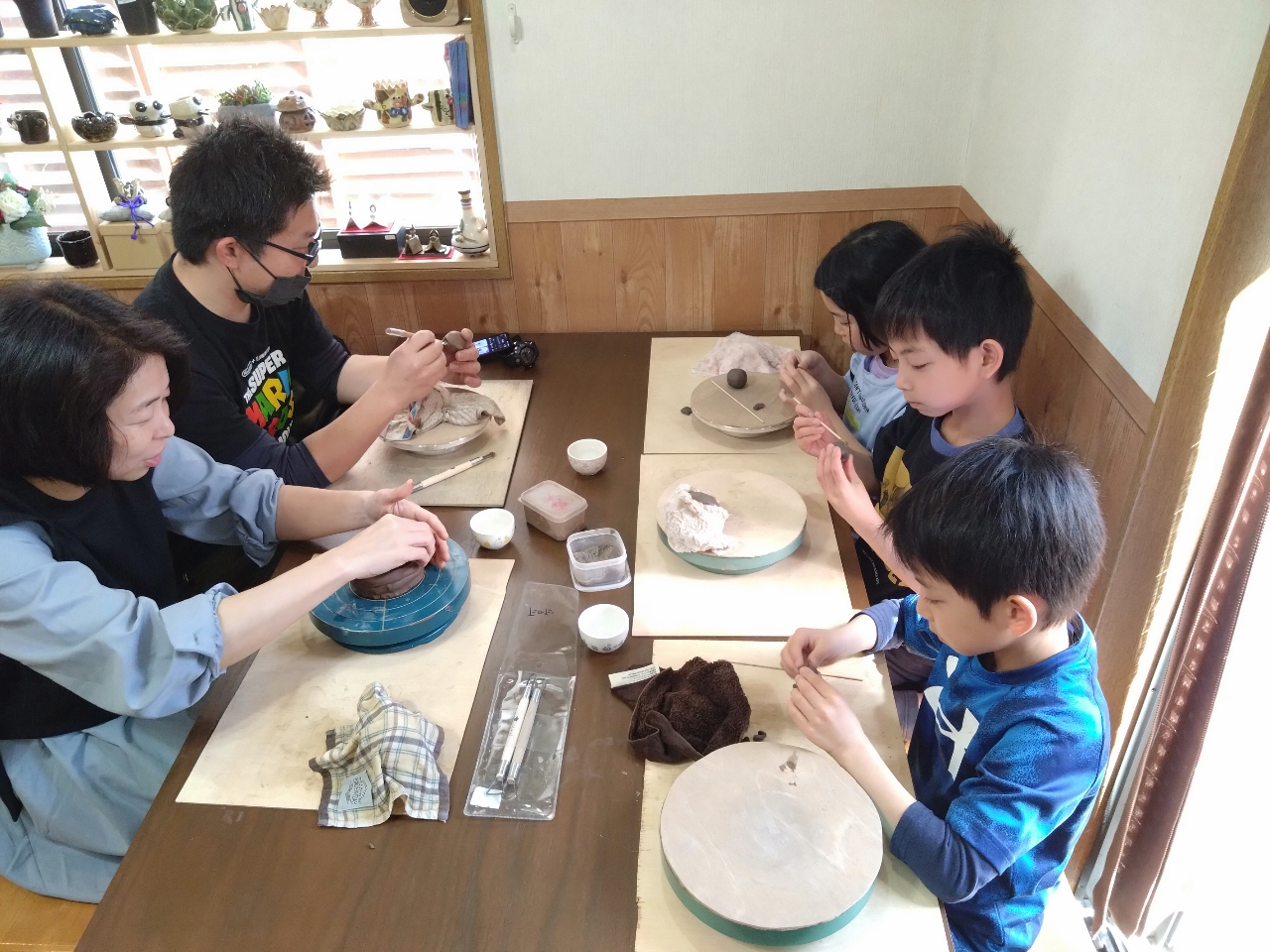 オーナーは趣味で陶芸をやっていて先生ではありませんが、気楽に一緒に楽しめる、日本一(自称でです(笑))気軽な工房です。
