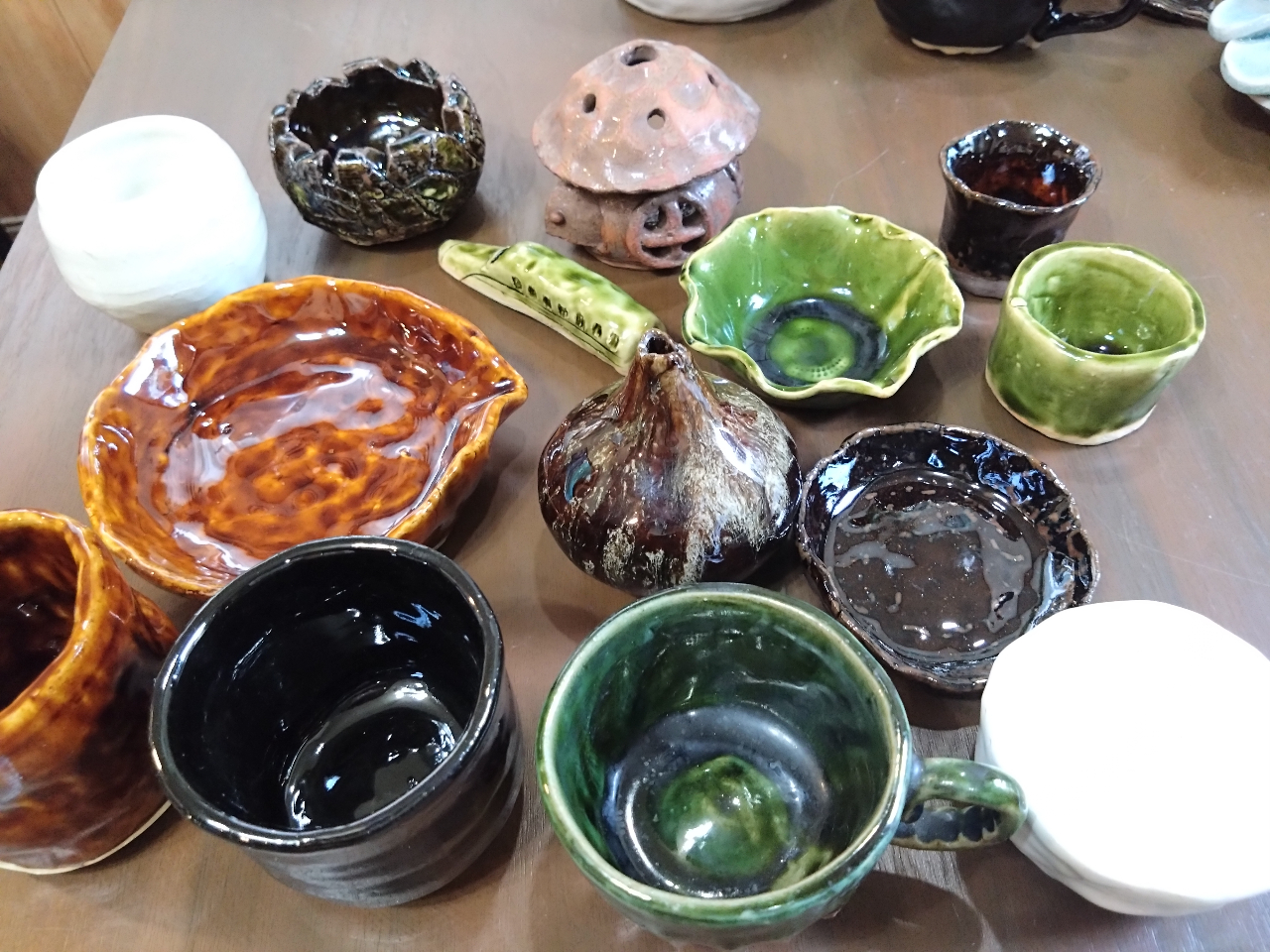 • 作品例の1部です。このコースでは、人形や小物のほか、小さめにカップや湯呑、小皿などもつくれます♪