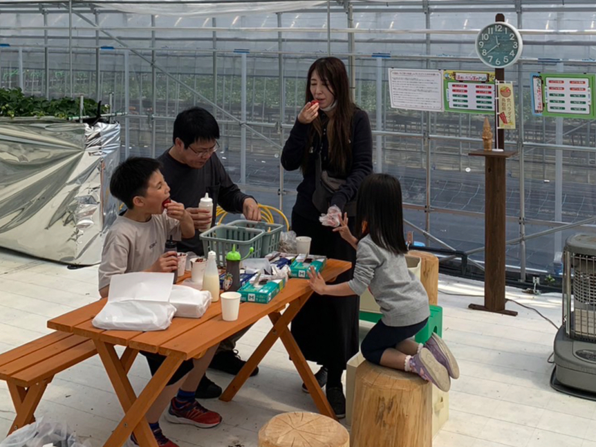 案内してくれたおじさんも気さくに話して下さって、大きなビニールハウスに1家族だけだったのでゆっくり食べられました。