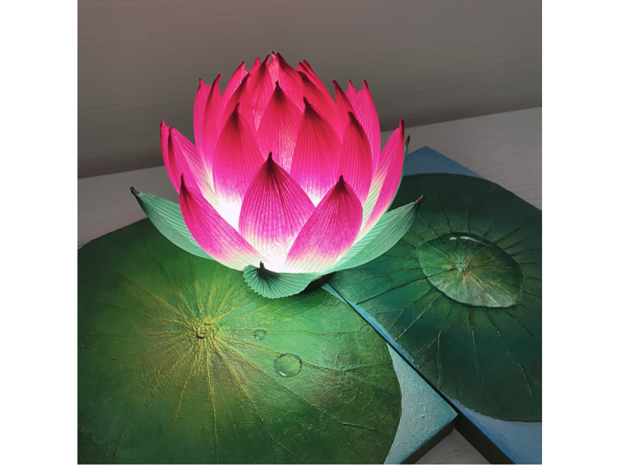 出来上がった蓮の花の下にLEDキャンドルを灯すのがおススメです