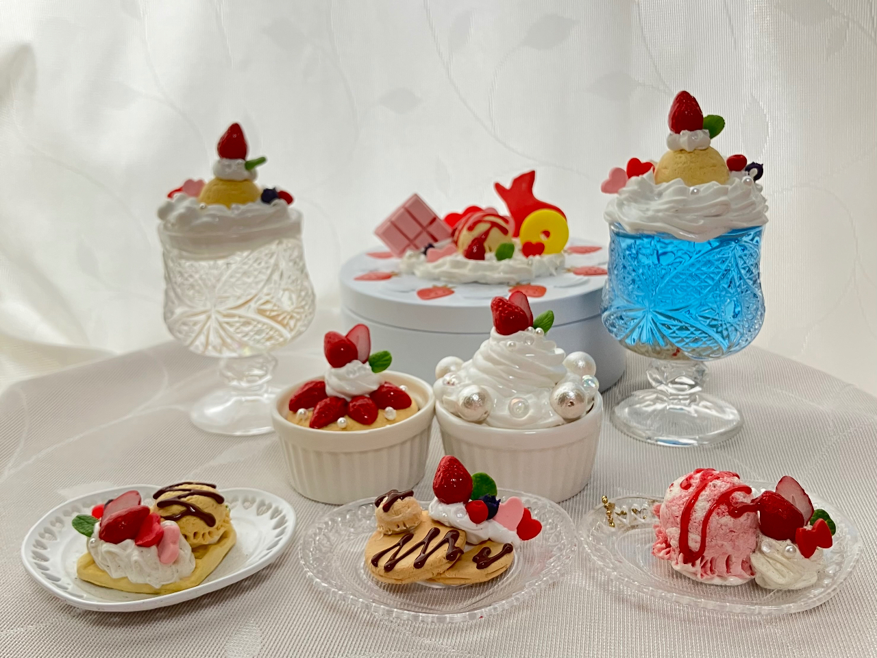 いろんな種類の中から選んでいただきますアイスクリームやドーナツクッキーなどをオリジナルで疲れちゃいます。一緒にフェイクスイーツを楽しみましょう