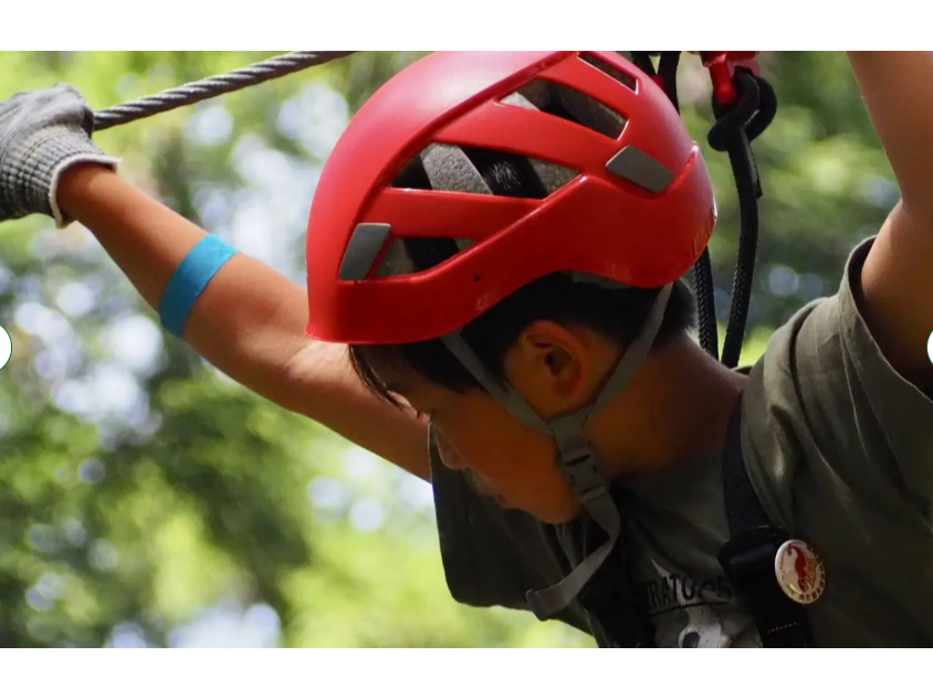 専用のハーネスを着用し、樹から樹へと空中移動しながら自然の中に作られたアクティビティに挑戦!