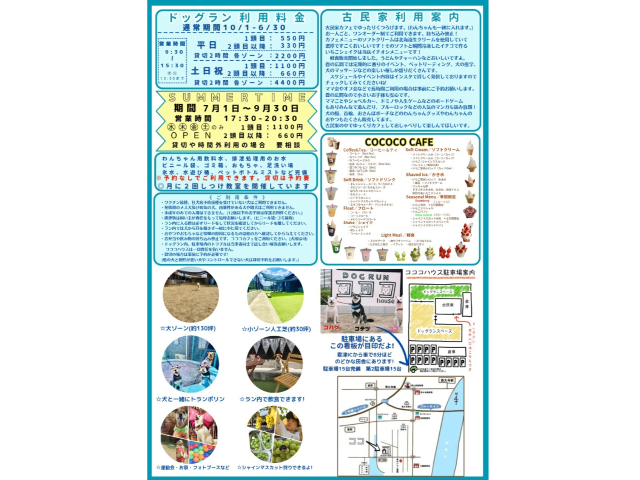 ドッグランやカフェなど、様々なサービスをご提供しています。ドッグランと聞くと、ワンちゃん連れでなければいけないイメージがあるかと思いますが、ここではワンちゃんを飼っていない方のご利用も大歓迎。古民家カフェでゆっくりくつろいでください。