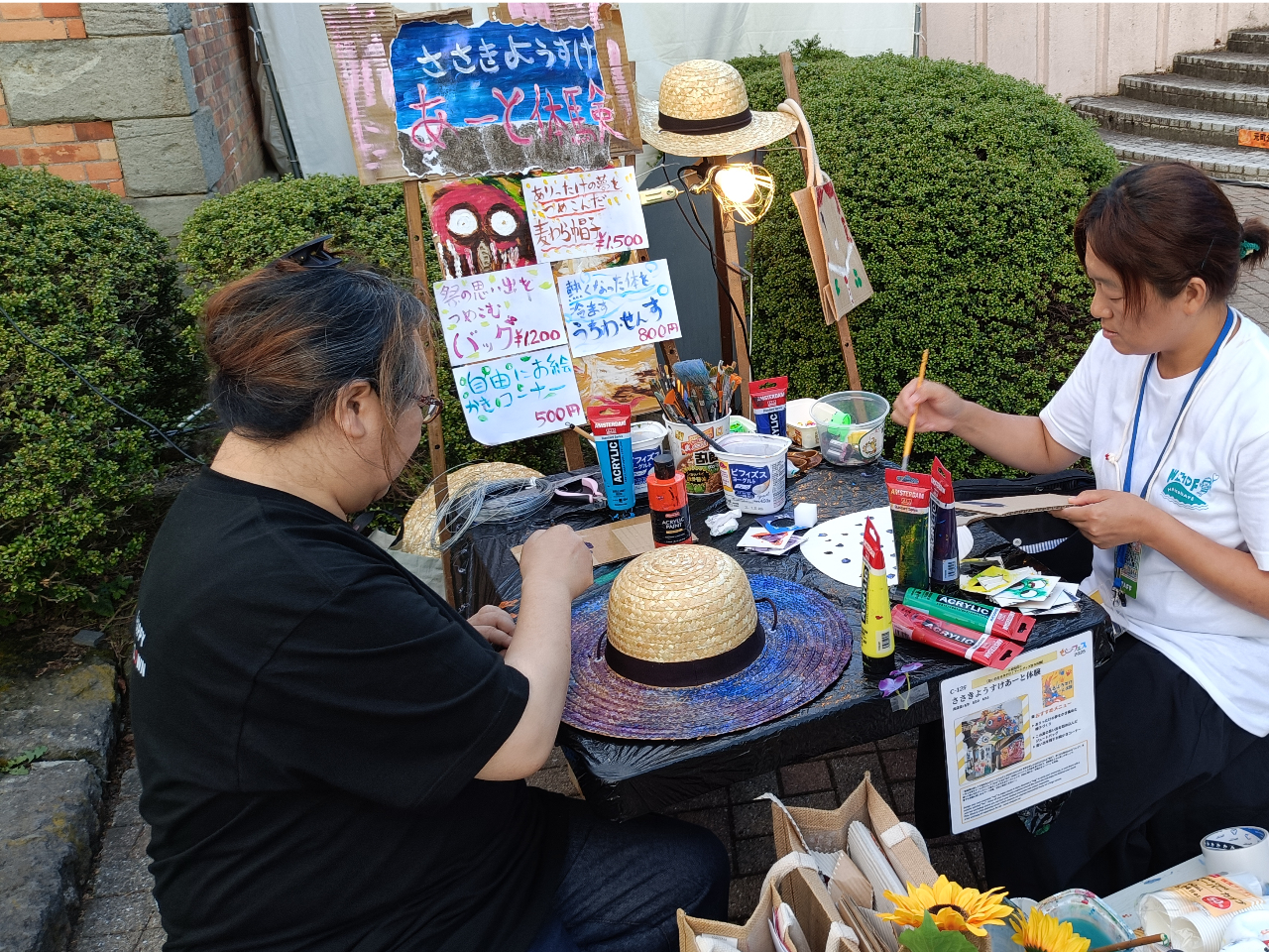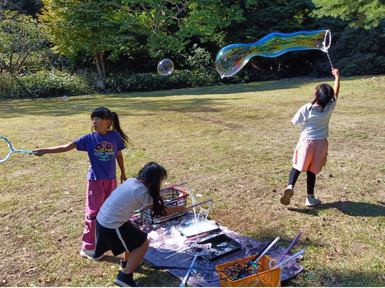 ノラーネコノデコアート表現教室が主催する、アートなお出かけ。教室から飛び出で、色んな所で絵を描きます。夏はシャボン玉体験も出来ます。