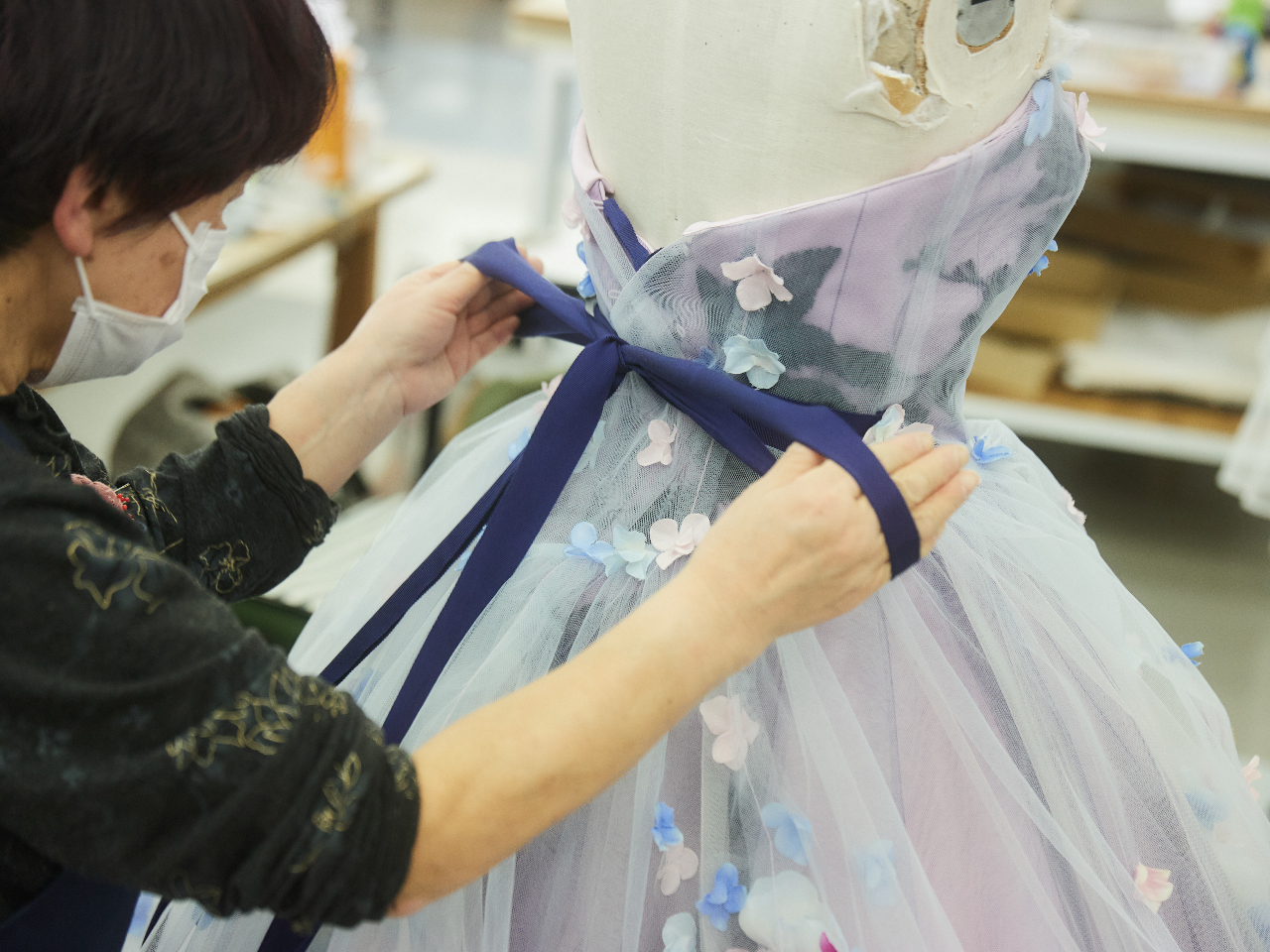 パターンや裁断、縫製、仕上げ、検品など一着のドレスが完成するまでの様々な工程を間近でご覧いただけます♪