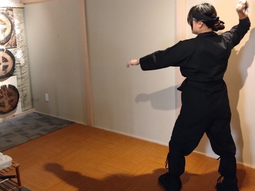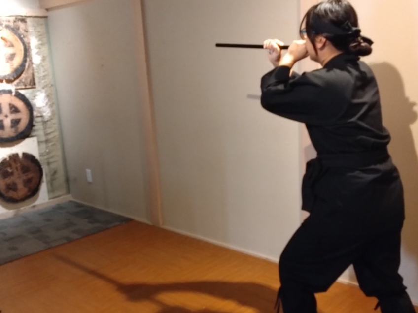忍者修行(手裏剣・吹き矢・剣術)と忍者コスチュームのレンタル、ドリンク1杯が付いた特別プラン!