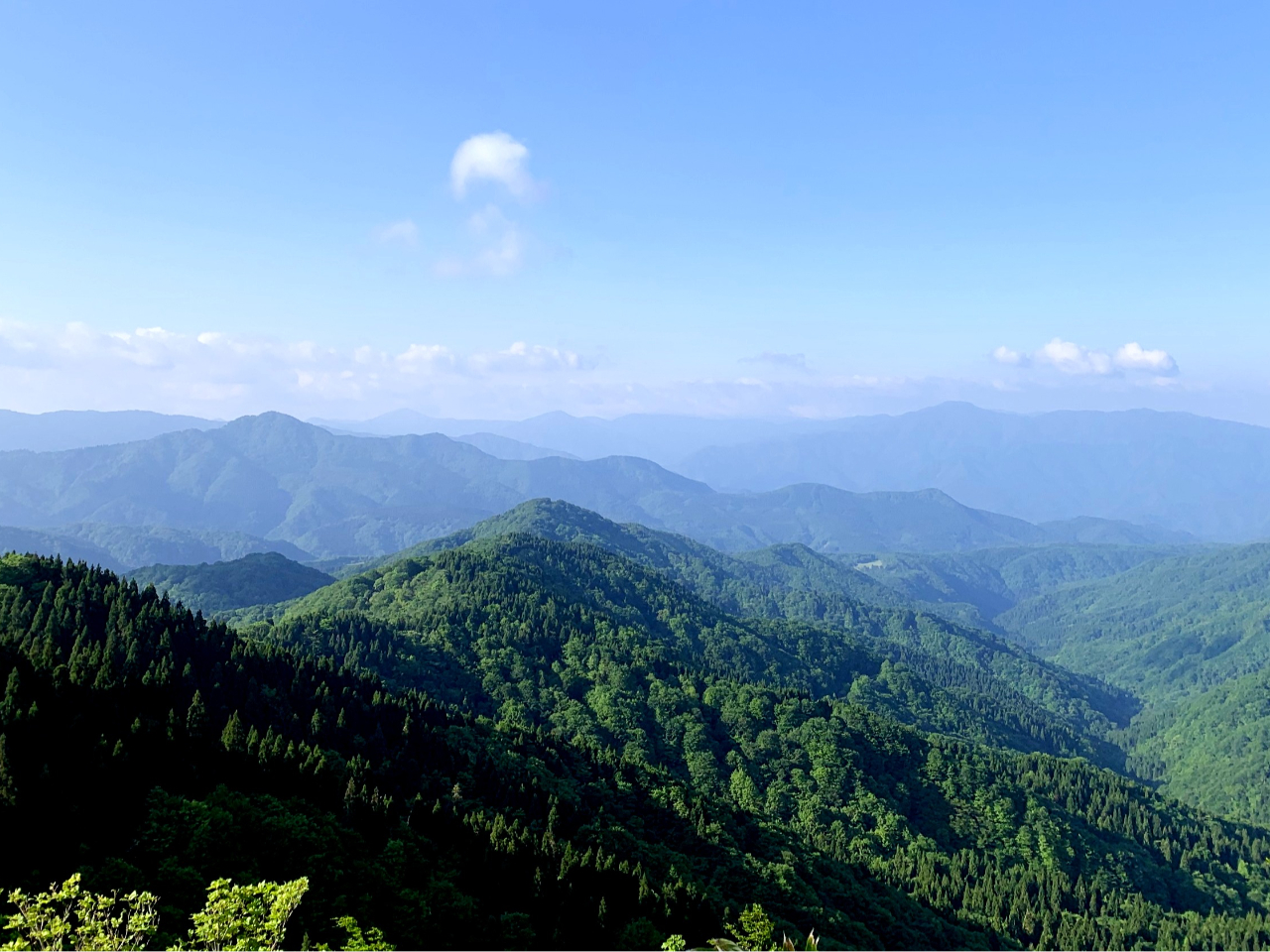 日本三百名山の1つ「扇ノ山(おおぎのせん)」標高は1,310m。ここふるさとの森コースは急勾配の登山ルートが特徴。頂上から眺望が広がり天気が良ければ大山、鳥取市街地、日本海も眺めることができます。