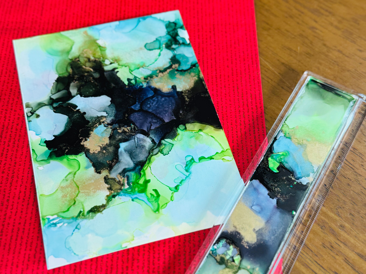 アルコールインク認定講師が絵を描くのが苦手でも楽しく体験できるワークショップを行っております。