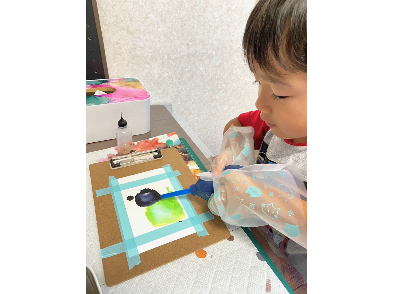 アルコールインク・エタノールを使って風を使い描くアート体験です。