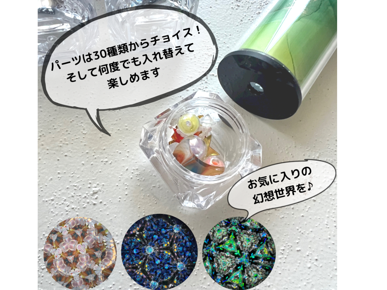 パーツが取り外しできおしゃれに持ち歩ける美しい万華鏡です。