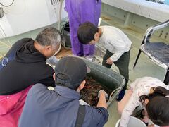 漁に参加はできないんですが、船内のいけすに一旦入れたあと掬い上げるのを子供たちが出来るので