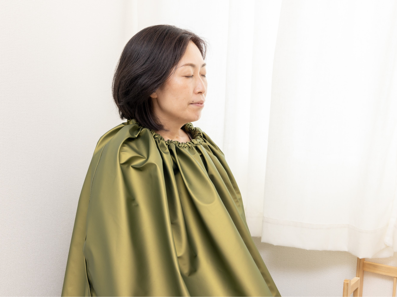 よもぎも香りも心地よくて、最後は顔まですっぽり入って温まりました。顔を出しておくこともできるので、ミストサウナなど苦手な方にも向いていると思います。