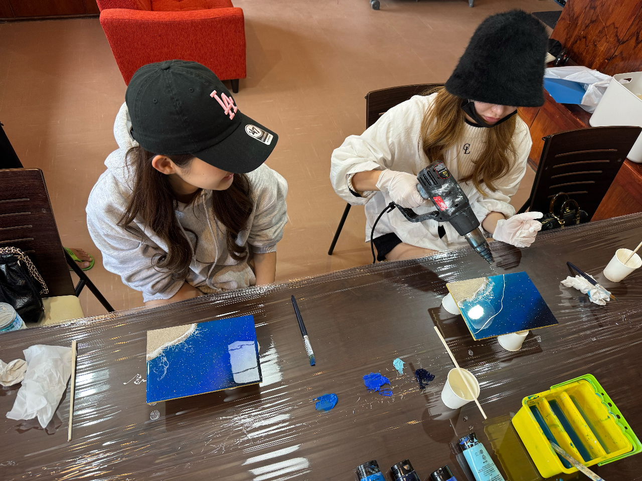 レジン液が服などに大変取れにくいので汚れても良い服でお越し下さい。
