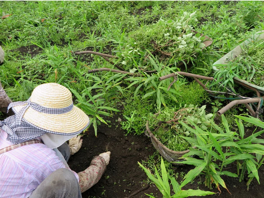 オーガニックファーム綾の農薬も化学肥料も除草剤も使わない畑で、