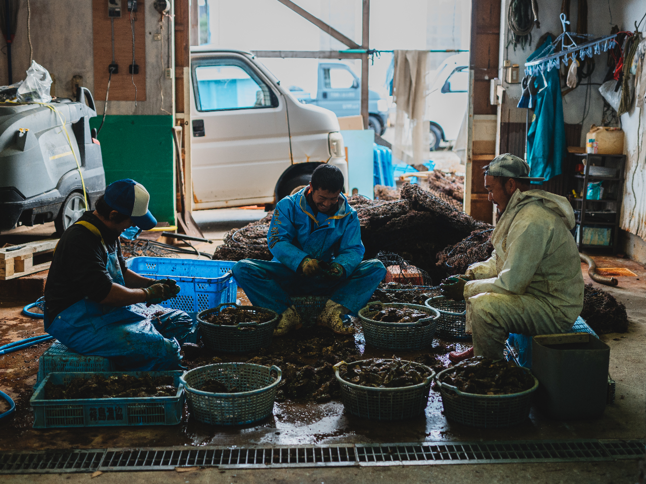 三河湾と伊勢湾の海流が交わる豊かな海で、今年から自社でも生産を開始しました。 虎丸牡蠣の技を元に丁寧に育てた牡蠣は、雑味や苦味がなく、 ほのかな磯の香りと自然な甘味が楽しめる味わいに仕上がっています。