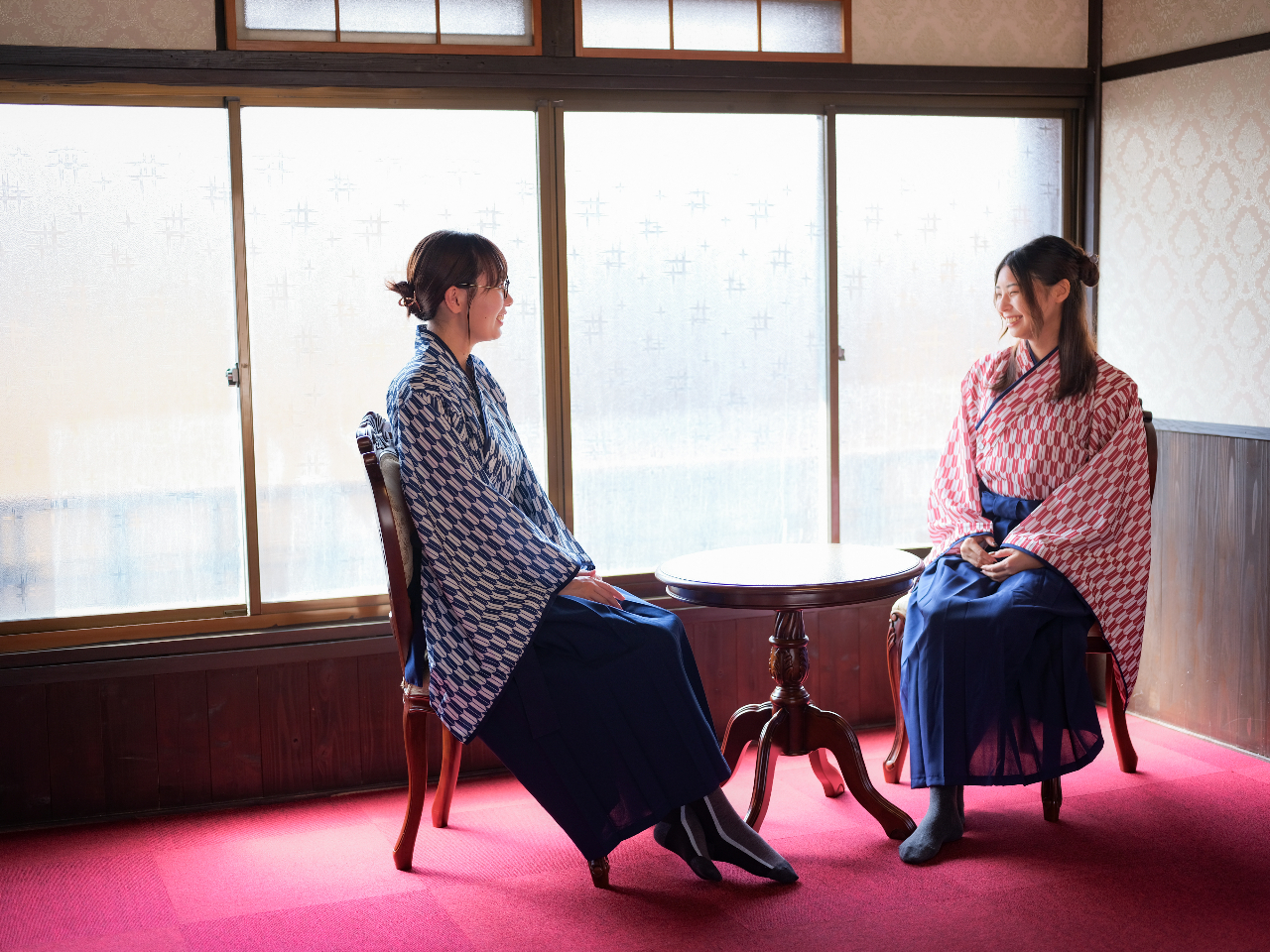 衣装レンタルができる部屋は大正ロマンな雰囲気にリノベーションされていて、お天気が心配な日でも楽しめちゃう!