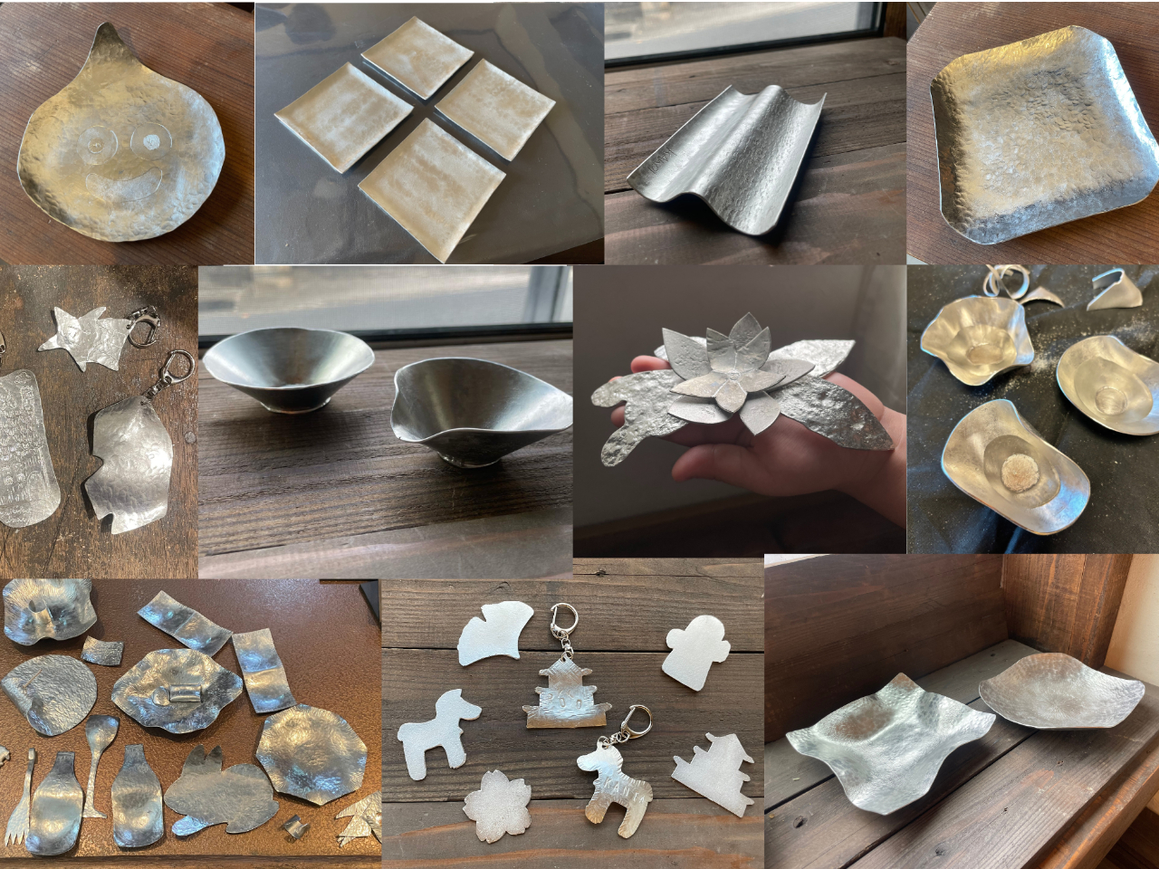 金属の錫の板(11センチ)に模様を打ち好きな形に成形し、オリジナルの小皿を作る体験です。その他クラフト・工芸
