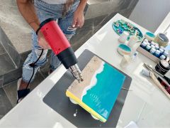エポキシ樹脂という特殊な素材を使い、まるで本物の水の様な質感アートを!