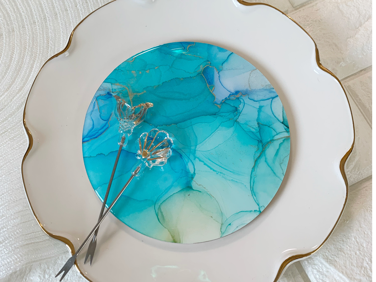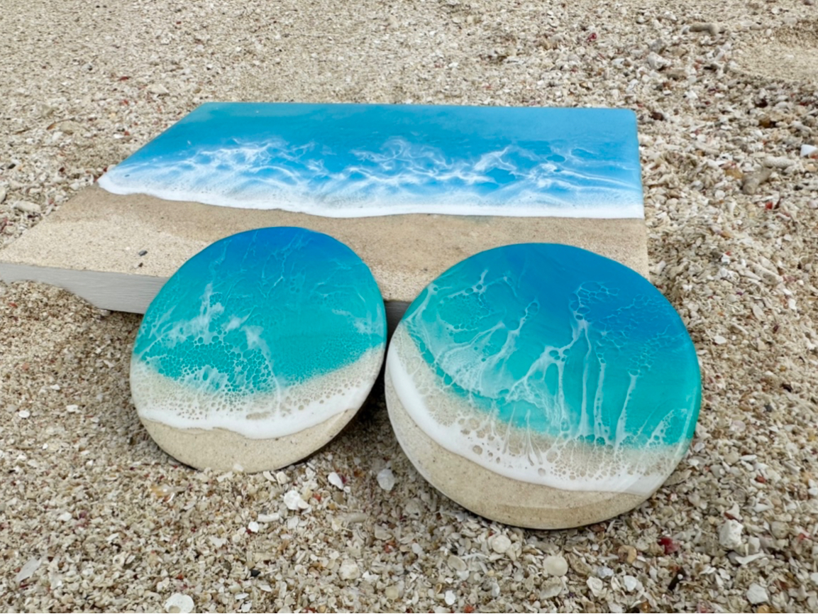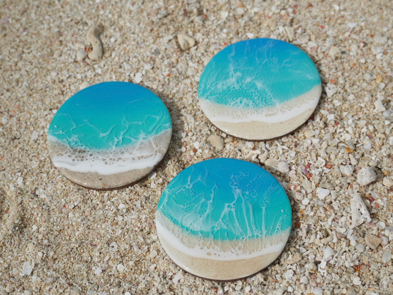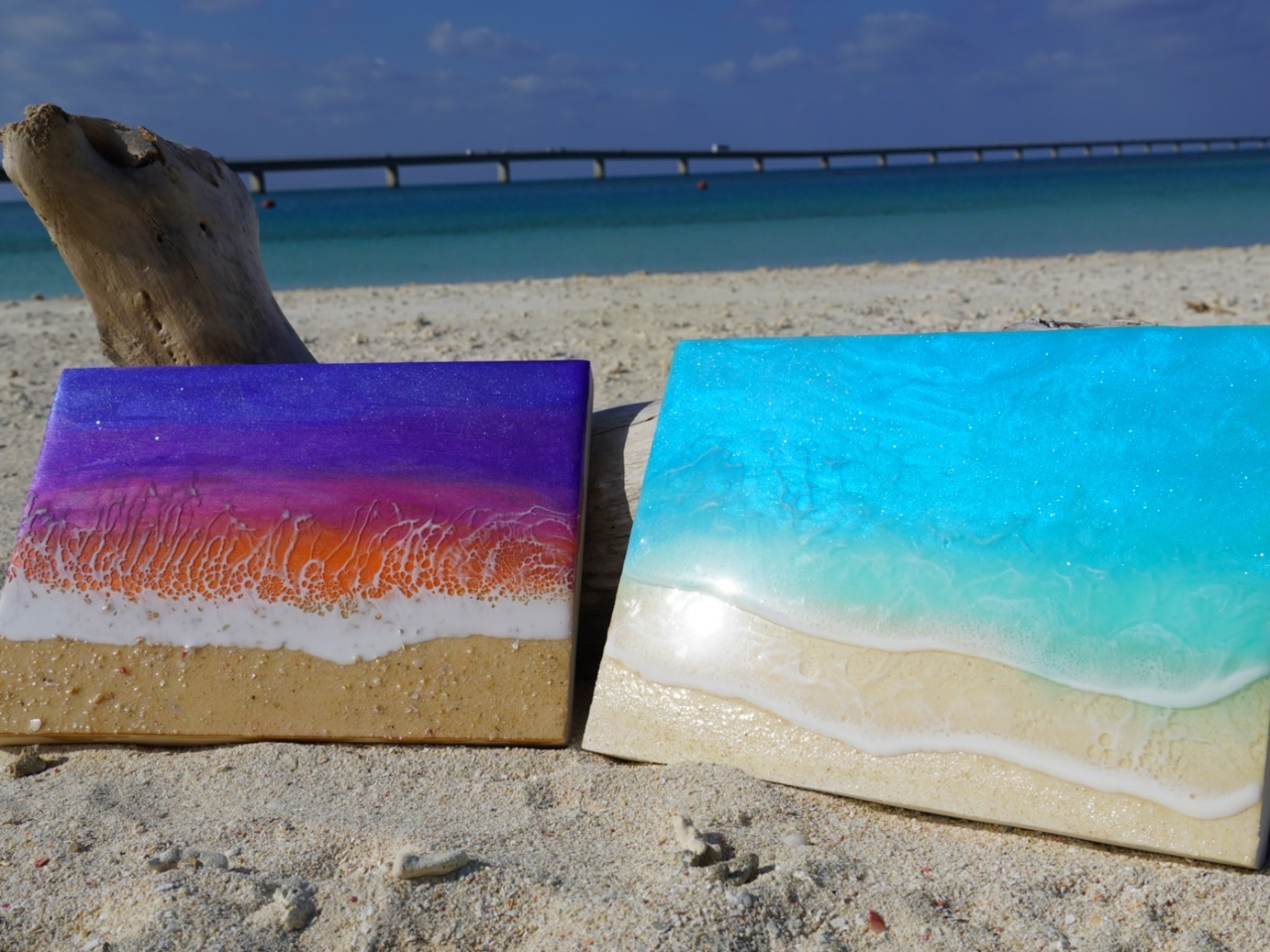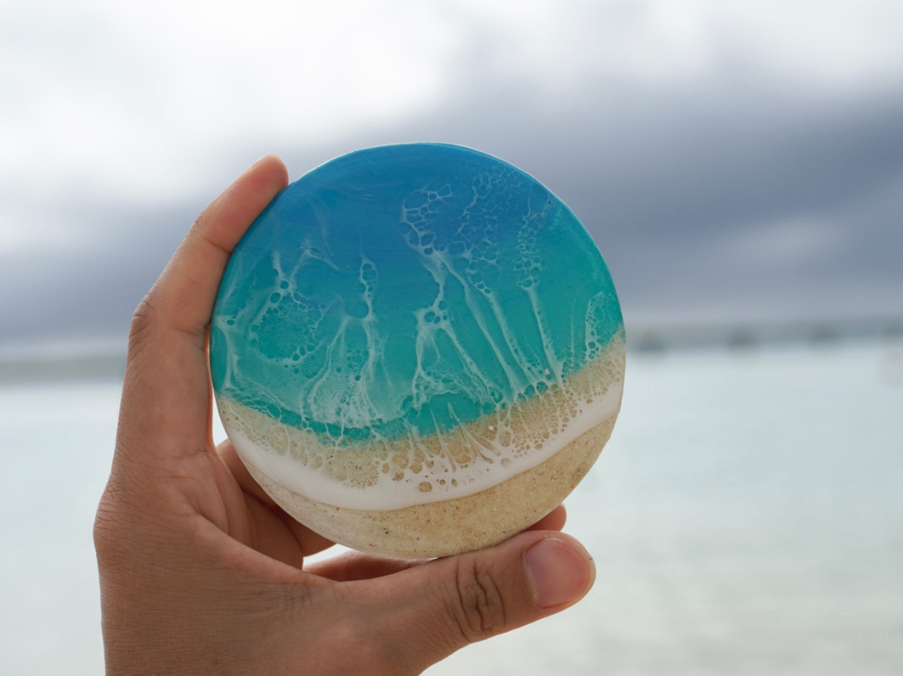 【波アート体験】レジンアートで宮古ブルーを再現使用♪『オリジナルコースター2枚』沖縄の海を手作り♪