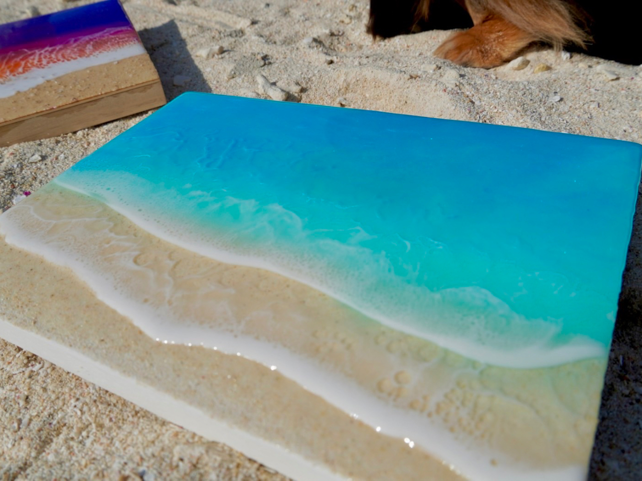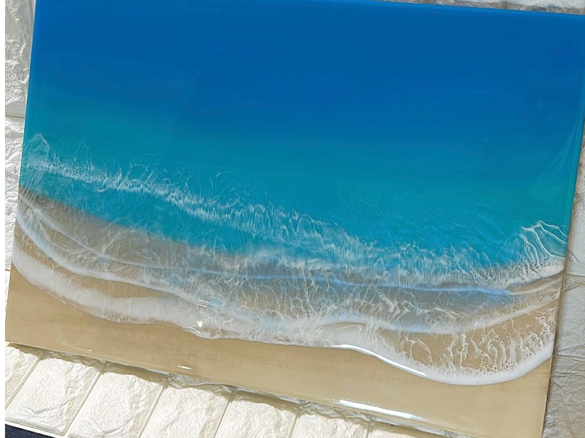 【波アート体験】レジンアートで宮古ブルーを再現使用♪『A4パネル』沖縄の海を手作り♪