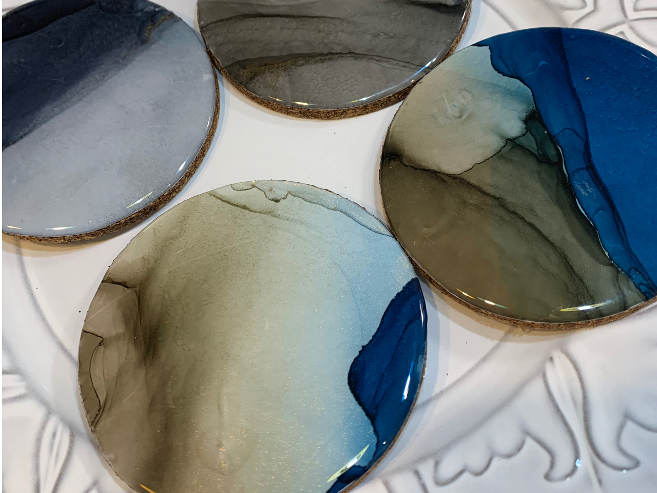 【波アート体験】レジンアートで宮古ブルーを再現使用♪『オリジナルコースター2枚』沖縄の海を手作り♪