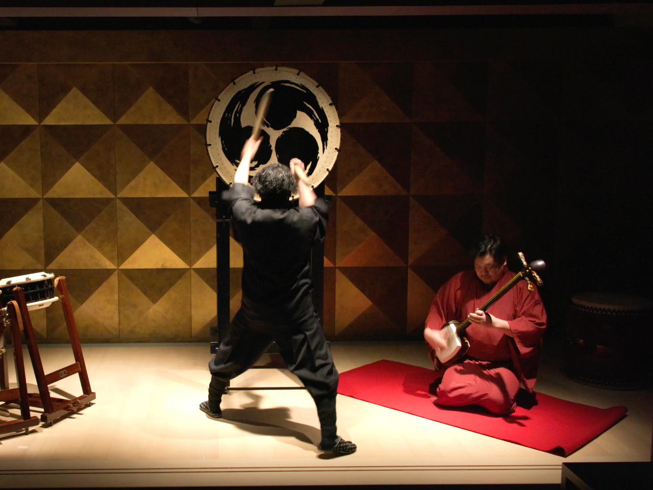 迫力ある太鼓や三味線演奏。