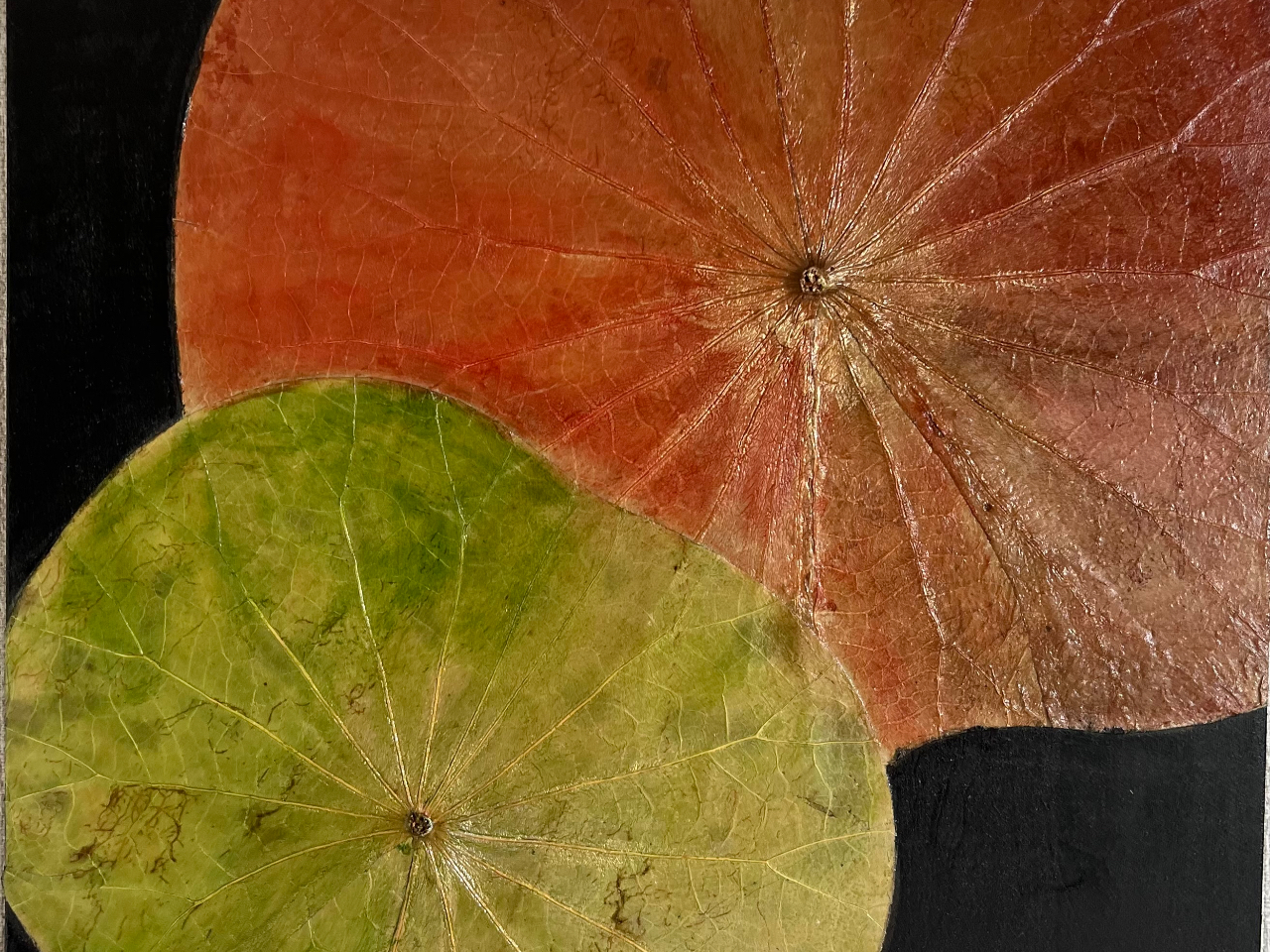 SNSで話題のアート体験♪蓮や菩提樹の葉を貼り着彩するアートです。絵が苦手な方でもOK!夢中に色を重ねる楽しみを感じて、オンリーワンの作品を作ってみませんか?