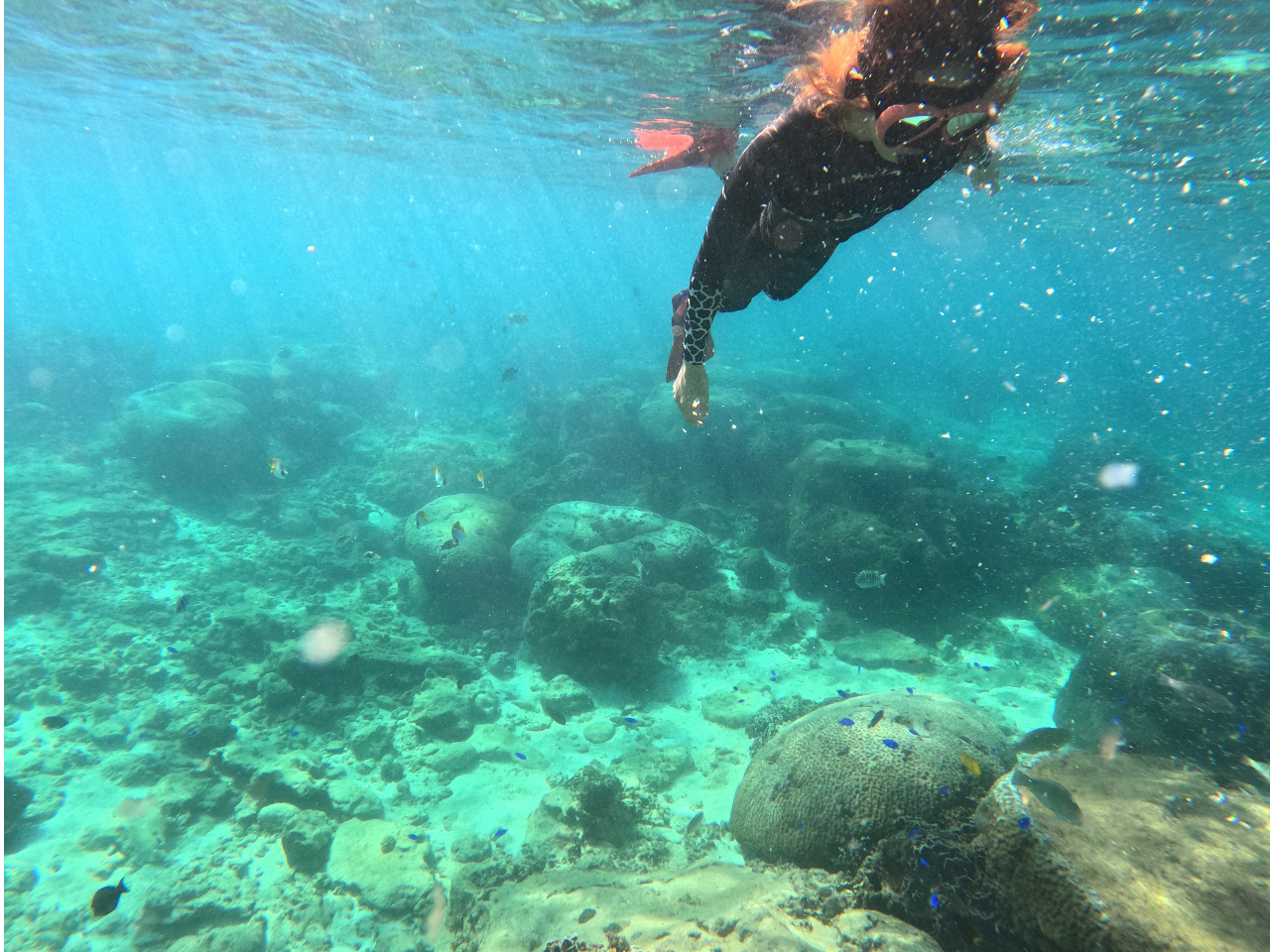 洞窟までは色とりどりの珊瑚礁やカラフルなトロピカルフィッシュたちとGoProで水中写真を撮りながらシュノーケリング!!