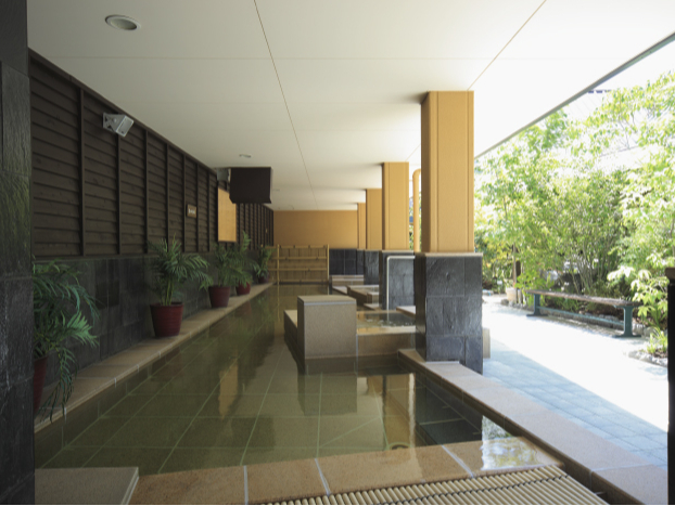 ボウリング、ゴルフ、フットサルなどを楽しめる、全天候型のレジャー施設「マグ スミノエ」内にあり、大阪市内で四季の移ろいを感じることができる温浴施設。