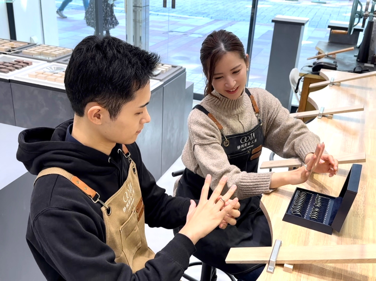 思い通りのペアリングデザインを目指して楽しい彫金体験。