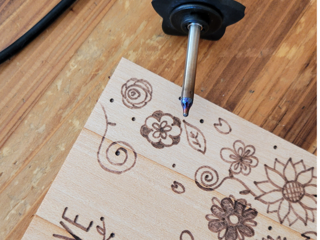 親子で訪れて子どもの下絵を保護者がウッドバーニングするのもOKです!