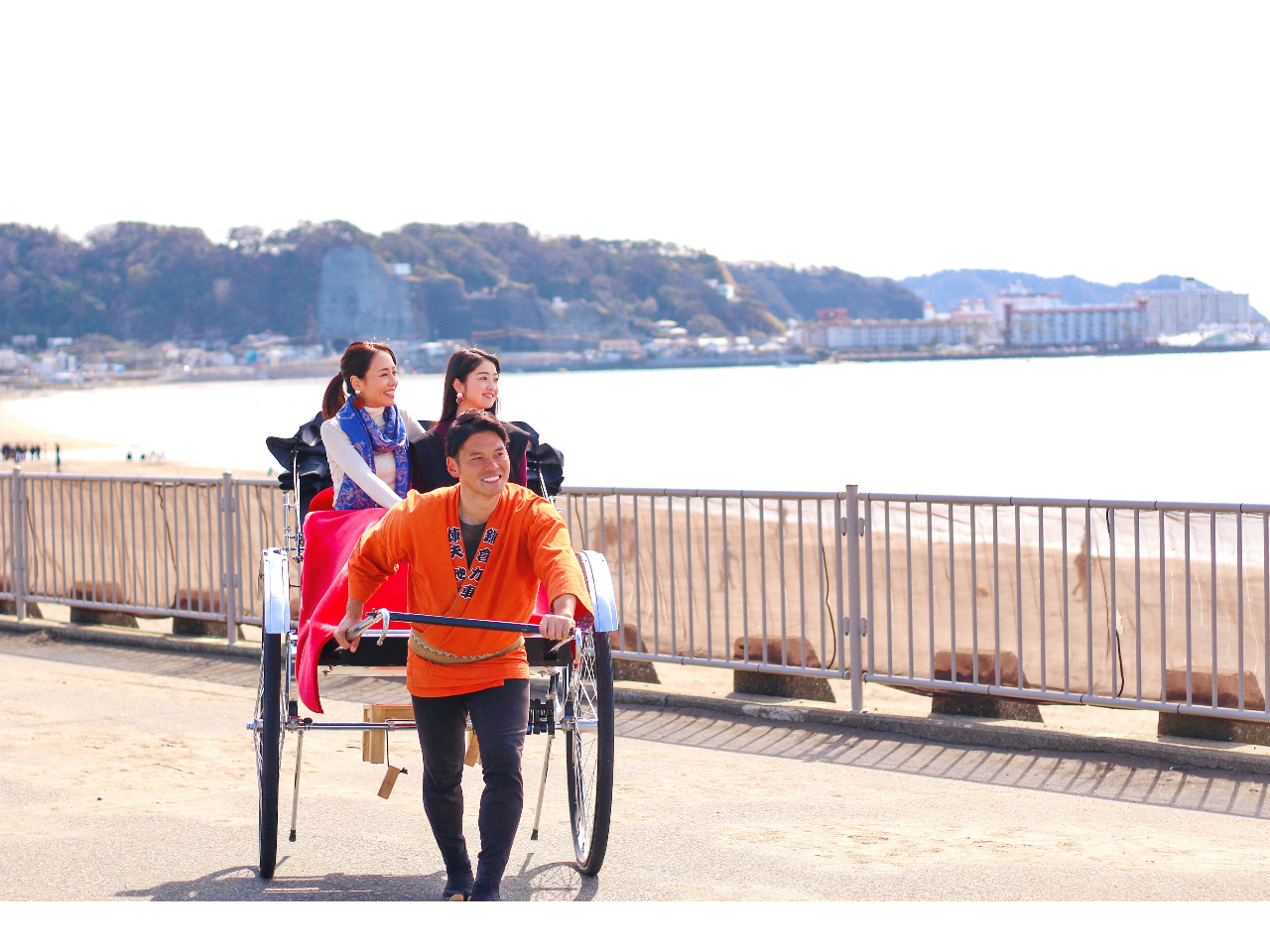 人力車に御乗車頂いて、鎌倉案内のプロが鎌倉の素敵な場所や歴史をご案内します♪