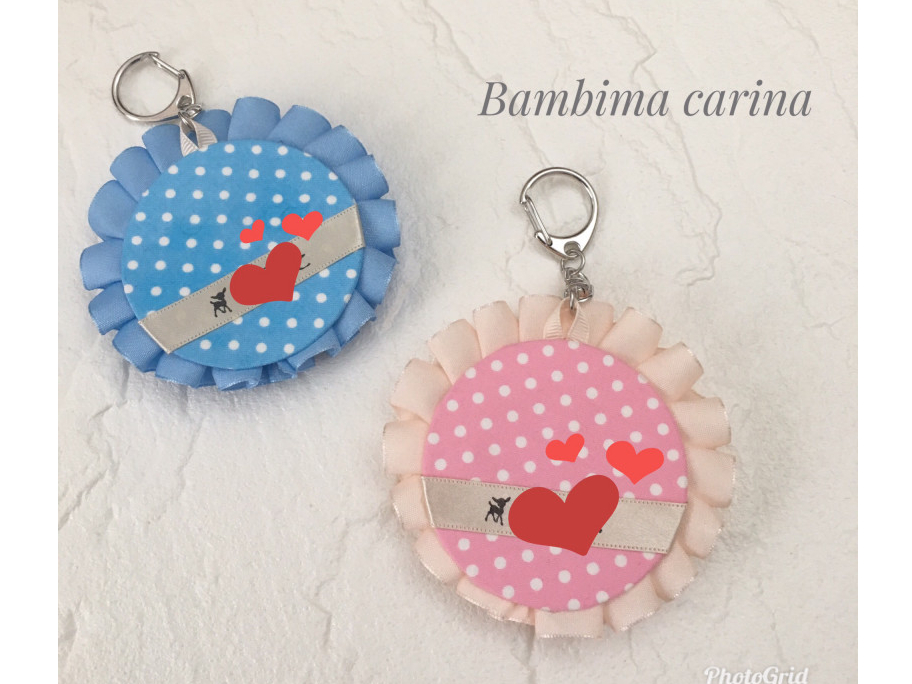 ロゼットはブローチ付クリップとキーホルダータイプ、バッグチャームから選べます。