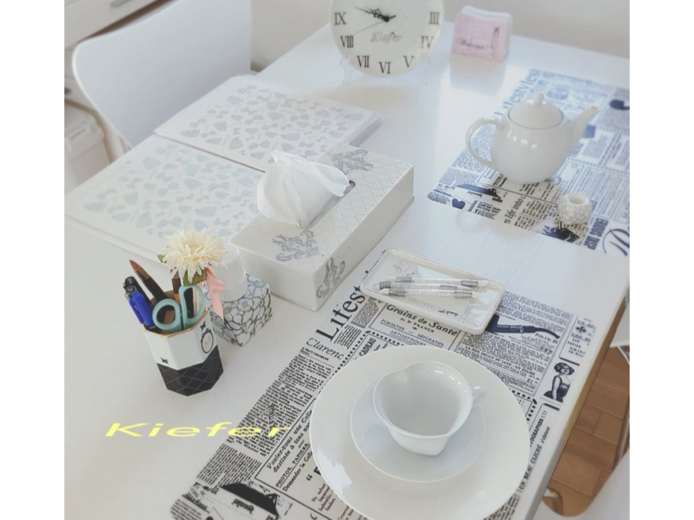 Kiefer会員様作品〜プレート制作イメージ♪モノトーンや花柄、北欧風、和柄、ダマスクやアニマル等々…さまざまなテイストの転写紙をご用意しております
