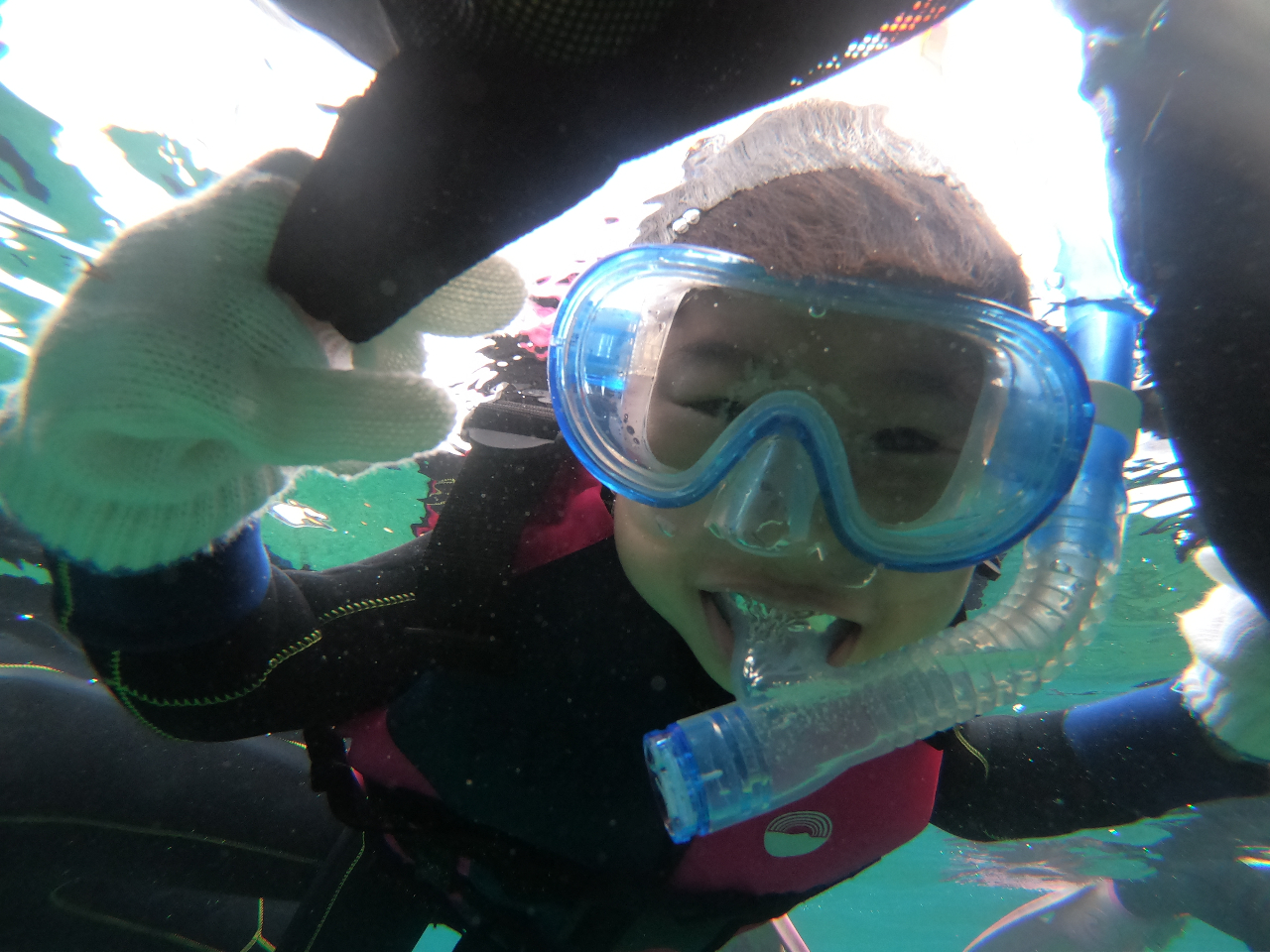 慣れてきたら自分で泳いでみましょう〜!!無重力の世界って最高!