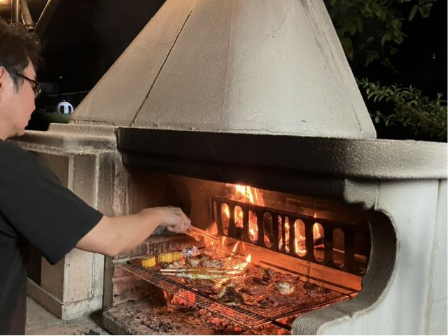 ・イタリア製の窯で、網もトングも薪も含まれていますので、女性同士で気軽にBBQ