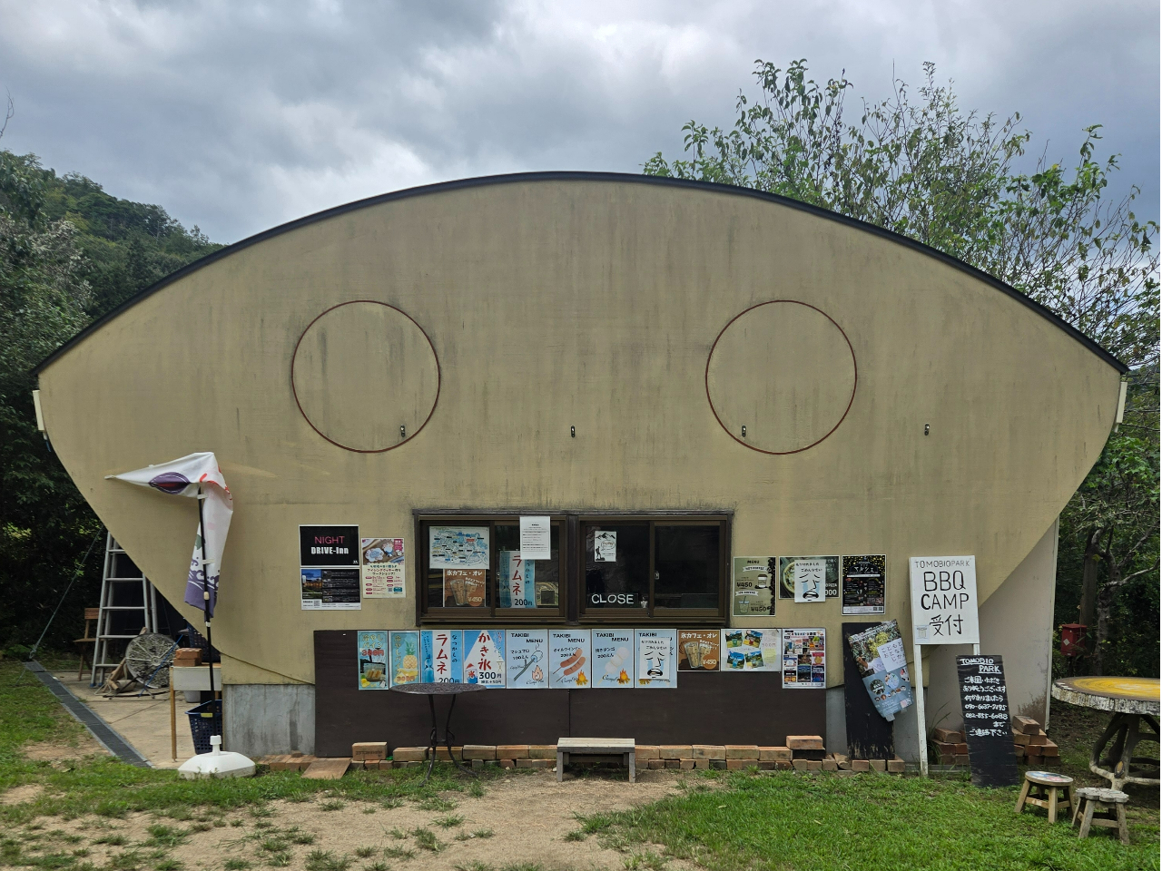 BBQ場奥のエリア。小さな木の小屋をレストハウスとしてご利用いただけます。