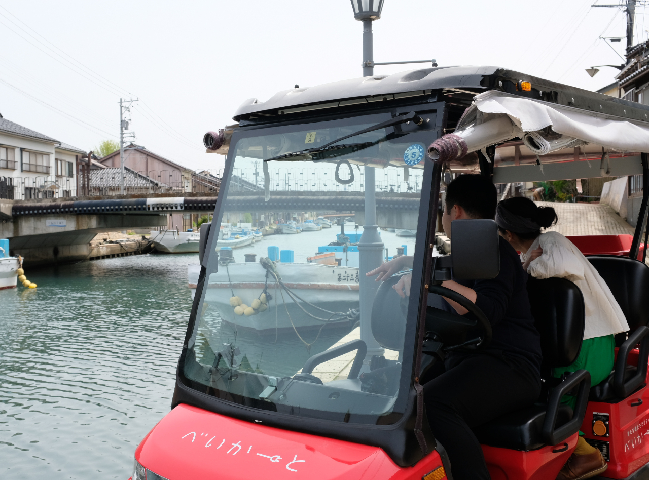 射水ベイエリアを周遊観光するための電動カート・電動トライクを活用した新たな観光モビリティ。