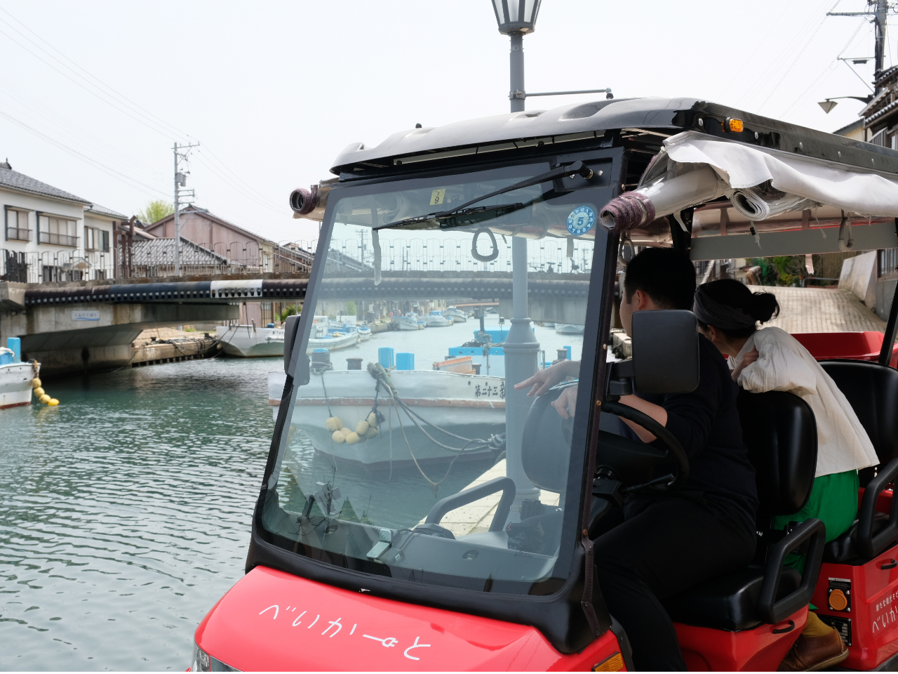 射水ベイエリアを周遊観光するための電動カート・電動トライクを活用した新たな観光モビリティ。