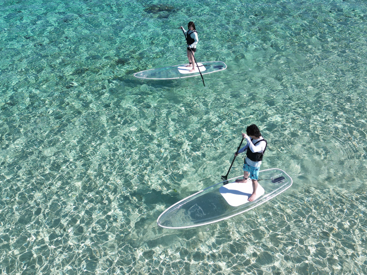 エメラルドグリーンな海を透明なSUPに乗って大冒険!