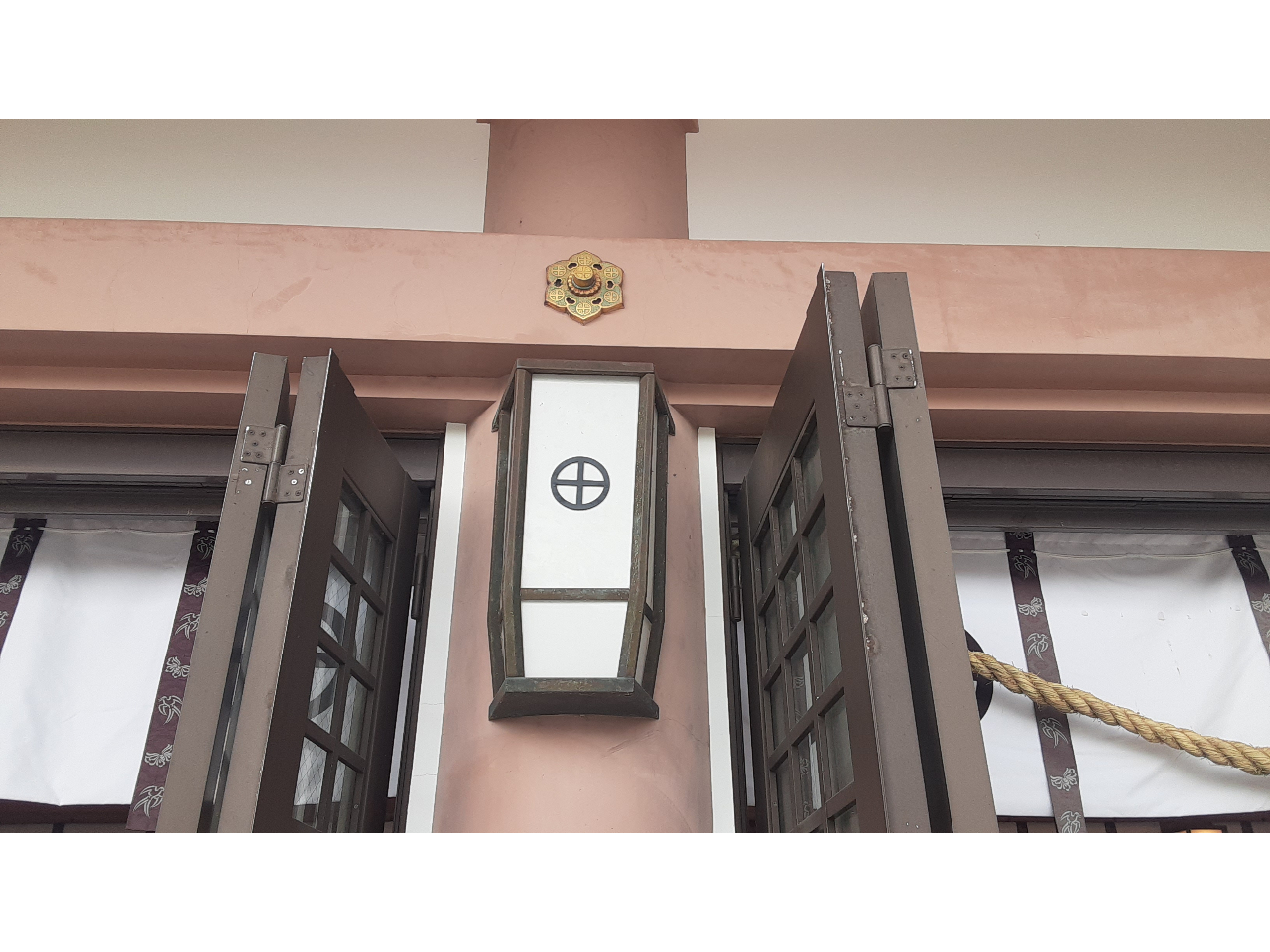 DThe metal fittings of Terukuni Shrine have a boar’s eye (heart shape) and a cross in a circle