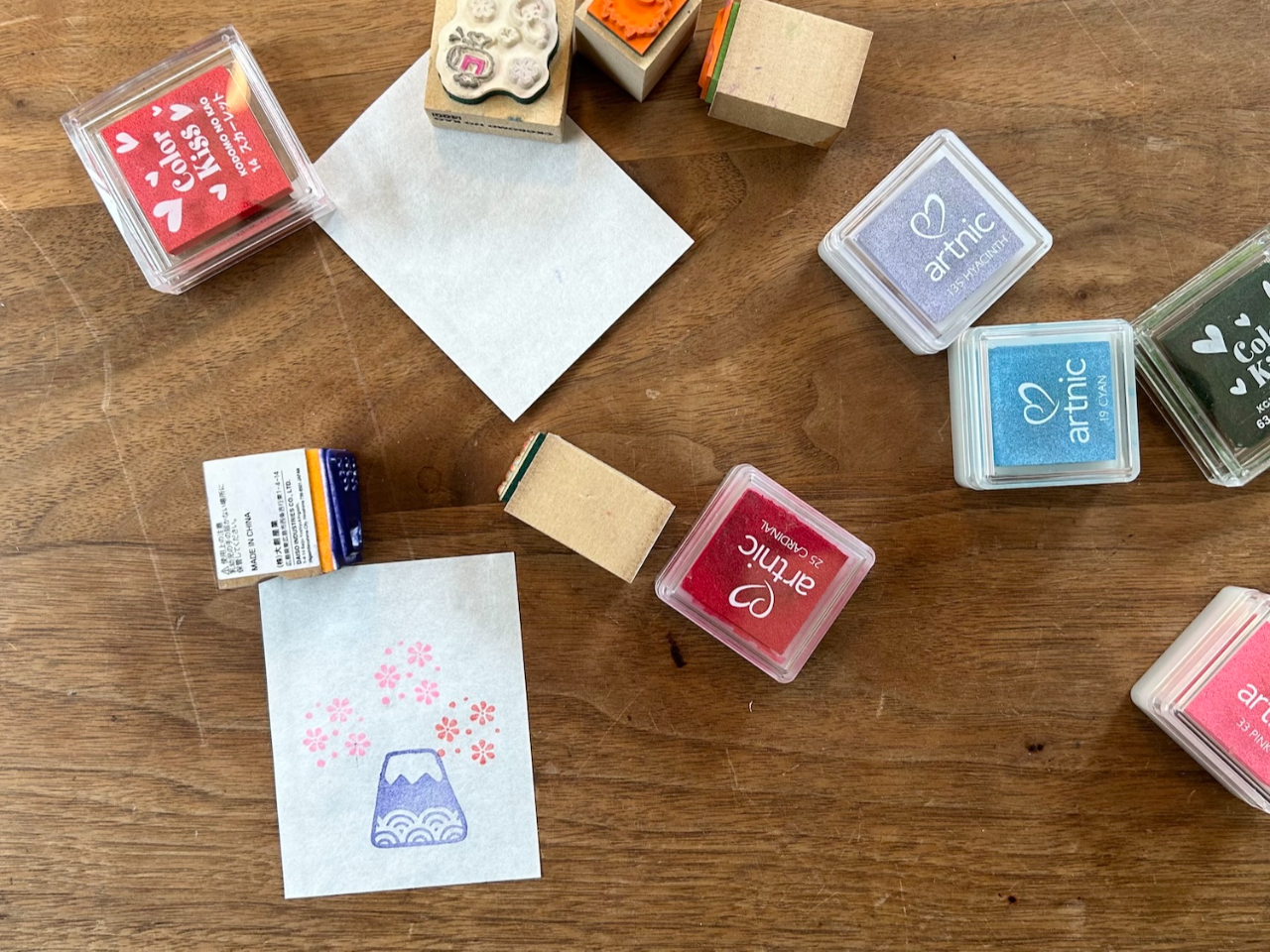 白い和紙のままも素敵ですが、お好きなスタンプを押せば、個性豊かな自分だけの文香に。お楽しみ頂けるようスタンプはいろいろ取り揃えてあります。持ち込みも大歓迎。