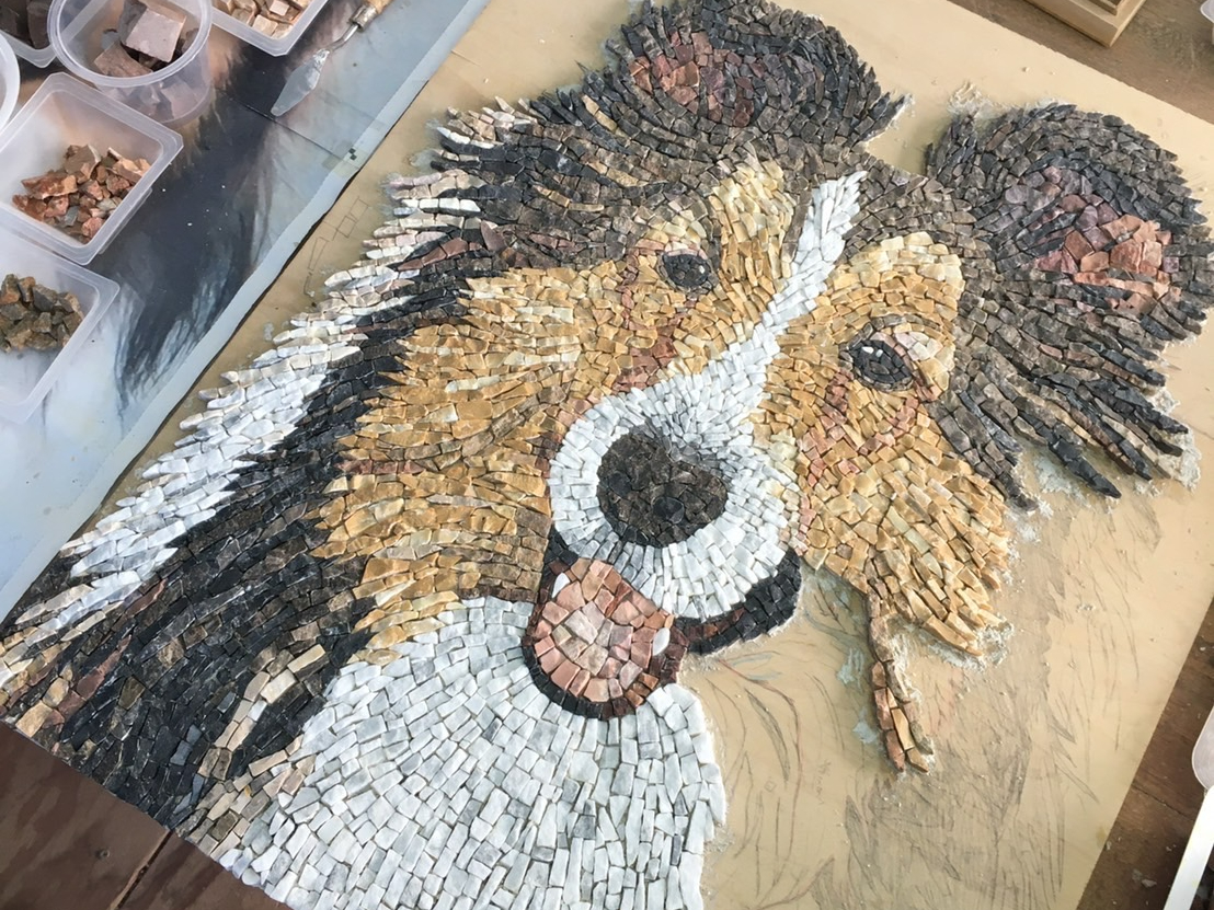 モザイクアートは、紀元前3000年から続く伝統工芸で、様々な色の石、大理石、ガラスを割ってピースを寄せ合わせて絵や模様をつくり上げる装飾美術の技法です。